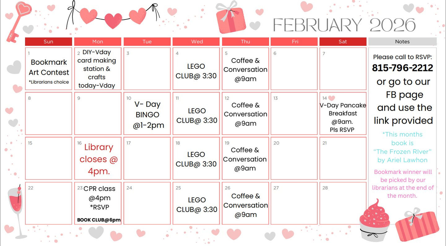 FPLD opened in November 2016. We are continuing to add new and donated books to our library. We offer a variety of resources such as books, computer use, WIFI, audio books, movies and have a variety of programs each month.